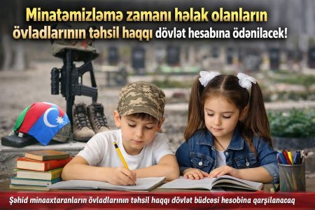 Minatəmizləmə zamanı həlak olanların övladlarının təhsil haqqı dövlət tərəfindən ödəniləcək