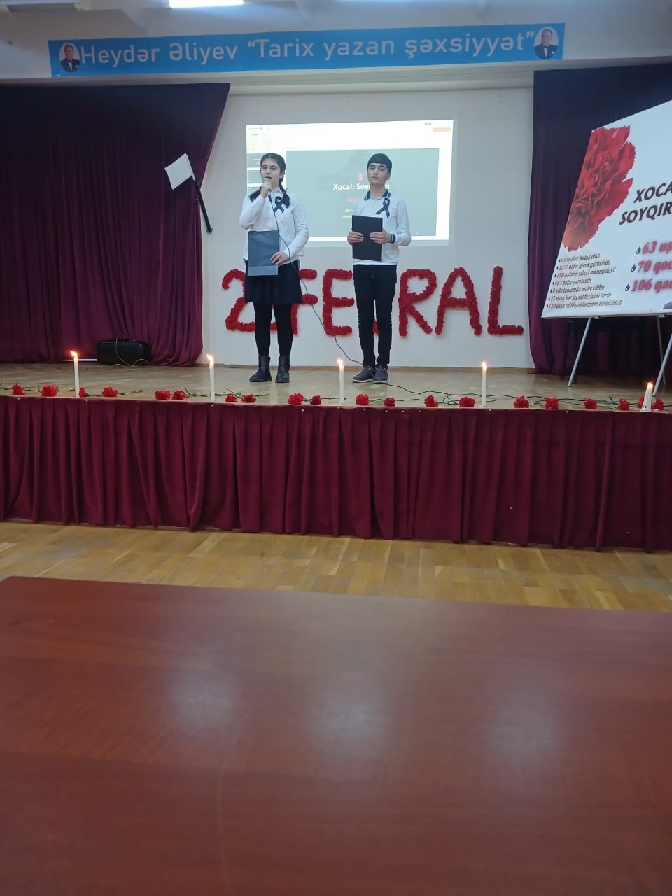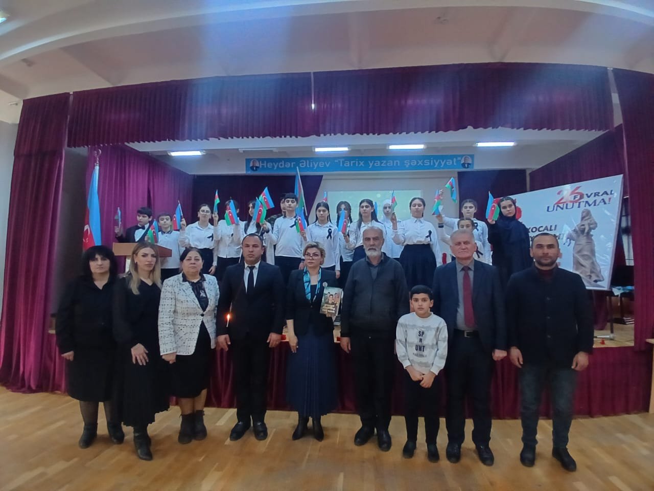Tədbir Azərbaycan Respublikasının Dövlət Himninin səsləndirilməsi və şəhidlərin əziz xatirəsinin bir dəqiqəlik sükutla yad olunması ilə başladı. Daha sonra məktəbin rəhbəri Nuridə Qarayeva çıxış edərək Xocalı faciəsinin Azərbaycan tarixində ən ağır və qanlı səhifələrdən biri olduğunu vurğuladı. O qeyd etdi ki, gənc nəslin milli yaddaş ruhunda böyüməsi, tarixi həqiqətləri dərindən bilməsi hər bir təhsil ocağının əsas vəzifələrindən biridir.