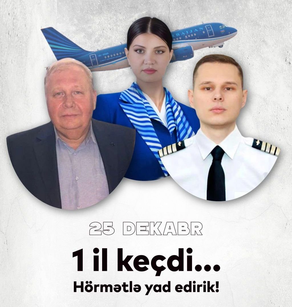 Bakı, 25 dekabr 2025 — Bu gün 25 dekabr, AZAL‑a məxsus Embraer 190 sərnişin təyyarəsinin Aktau (Qazaxıstan) yaxınlığında qəza enişi etməsinin 1 ili tamam olur. 25 dekabr 2024‑cü il tarixində Bakı–Qroznı reysi üzrə uçan J2‑8243 nömrəli təyyarədə 67 nəfər — 62 sərnişin və 5 ekipaj üzvü olub. Təyyarə qəza yerində dağılıb və 38 nəfər həlak olub, 29 nəfər sağ qalıb.