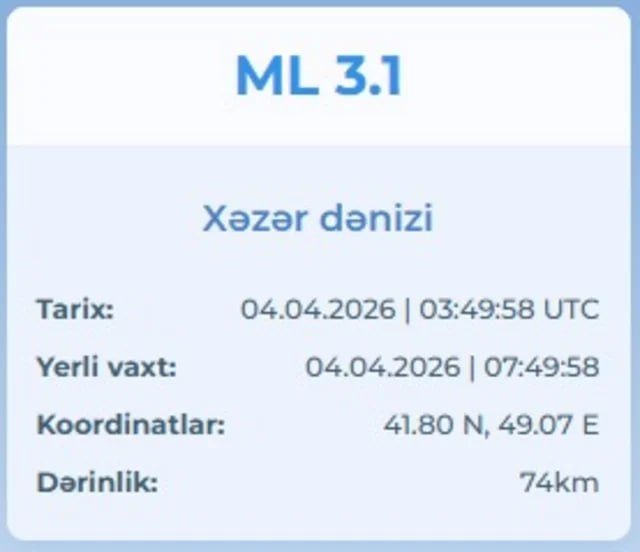 Məlumata görə, zəlzələnin maqnitudu 3.1, dərinliyi isə 74 km olub. Zəlzələ yerli vaxtla saat 07:49-da qeydə alınıb.