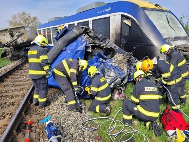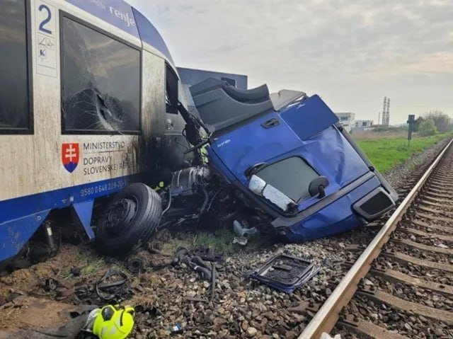 Slovakiyada dəmir yolu keçidində sərnişin qatarı ilə yarımqoşqulu yük avtomobilinin toqquşması ağır qəza ilə nəticələnib.