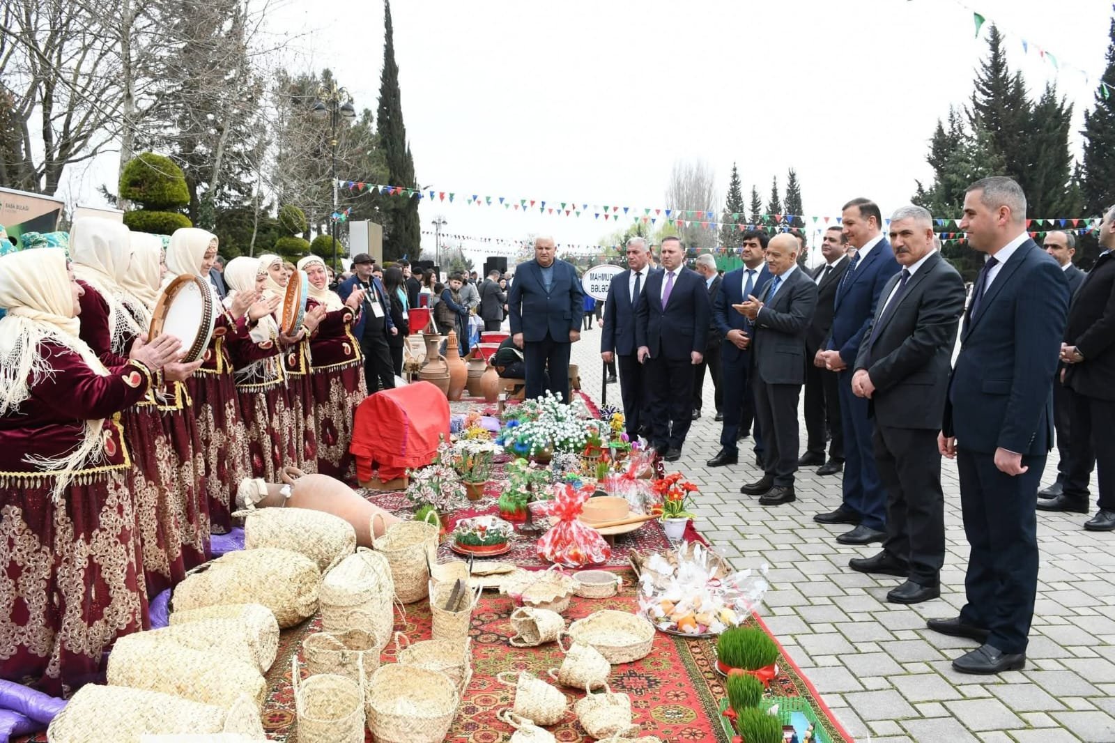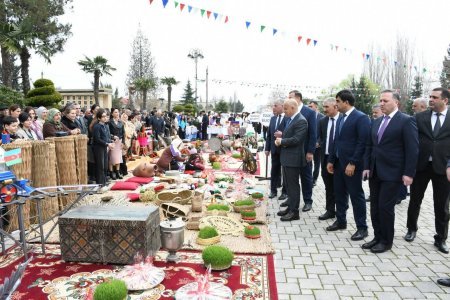 Masallı Rayon İcra Hakimiyyətinin inzibati binasının qarşısında təşkil olunmuş Novruz şənliyində el sənəti nümunələri, rayonda istehsal olunan məhsullar, milli mətbəximizin təamları və gənc rəssamların əsərlərindən ibarət sərgi nümayiş olunub.