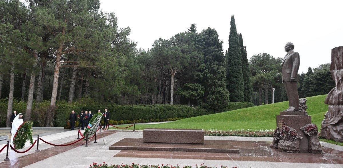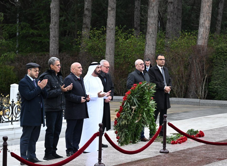 Ziyarət çərçivəsində qonaqlar əvvəlcə Fəxri xiyabanda Ümummilli Lider Heydər Əliyevin xatirəsini ehtiramla yad edərək məzarının önünə əklil qoyublar və tər çiçəklər düzüblər. Milli liderin müasir müstəqil Azərbaycan dövlətinin memarı kimi roluna dair qısa məlumat verilib.