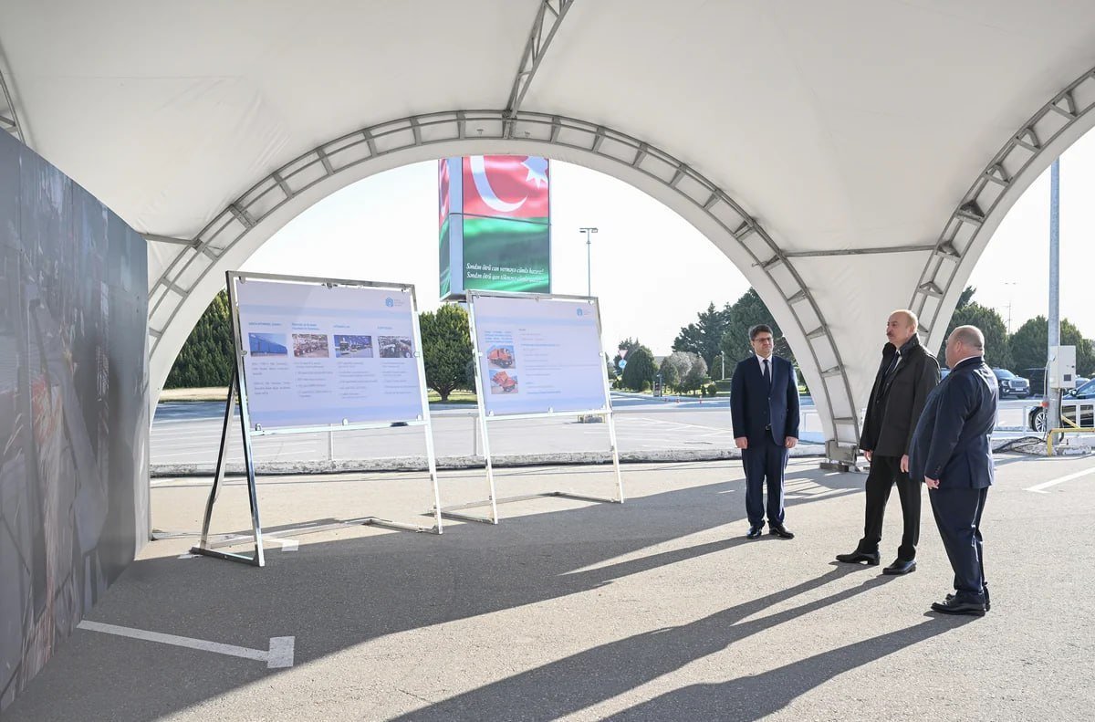 Bu gün, Prezident İlham Əliyev Bakı Ekspo Mərkəzinin həyətində məişət tullantılarının daşınması üçün nəzərdə tutulmuş yeni texnikalarla tanış olub.