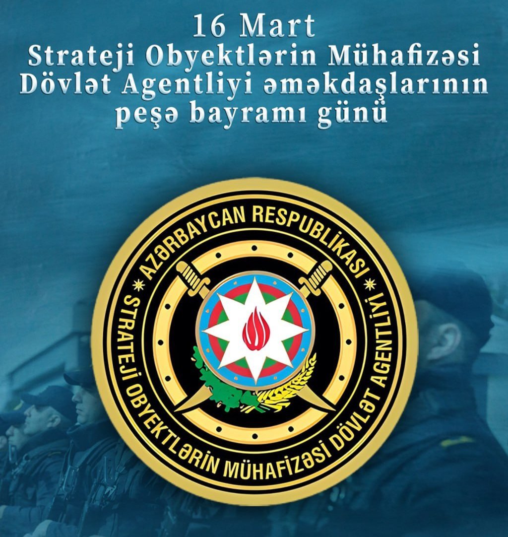 Bu gün Azərbaycan Respublikası Strateji Obyektlərin Mühafizəsi Dövlət Agentliyi əməkdaşlarının peşə bayramı günü qeyd olunur.